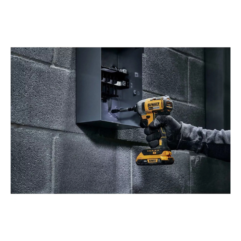 • Diseño Compacto y Liviano, el Atornillador de Impacto Inalámbrico de 20V MAX* DEWALT, cuenta con tecnología sin Carbones (BRUSHLESS), que le otorga a la herramienta una mayor eficiencia, que se traduce en más tiempo de uso y requiere menos mantenimiento.